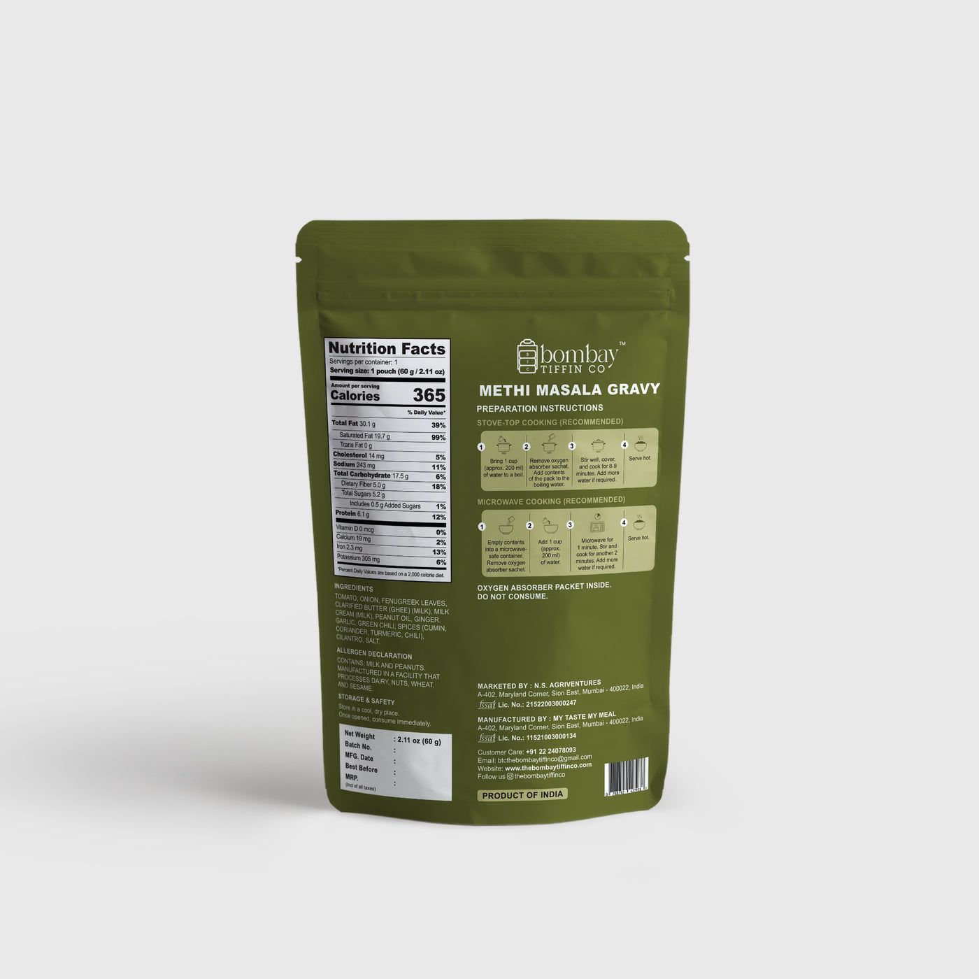 A beautiful Dhaba style Methi Masala Gravy mix that allowws you to add your choice of vegetables or Protein (Veg or Non-Veg) to rustle up your own Main dish when time demands it.